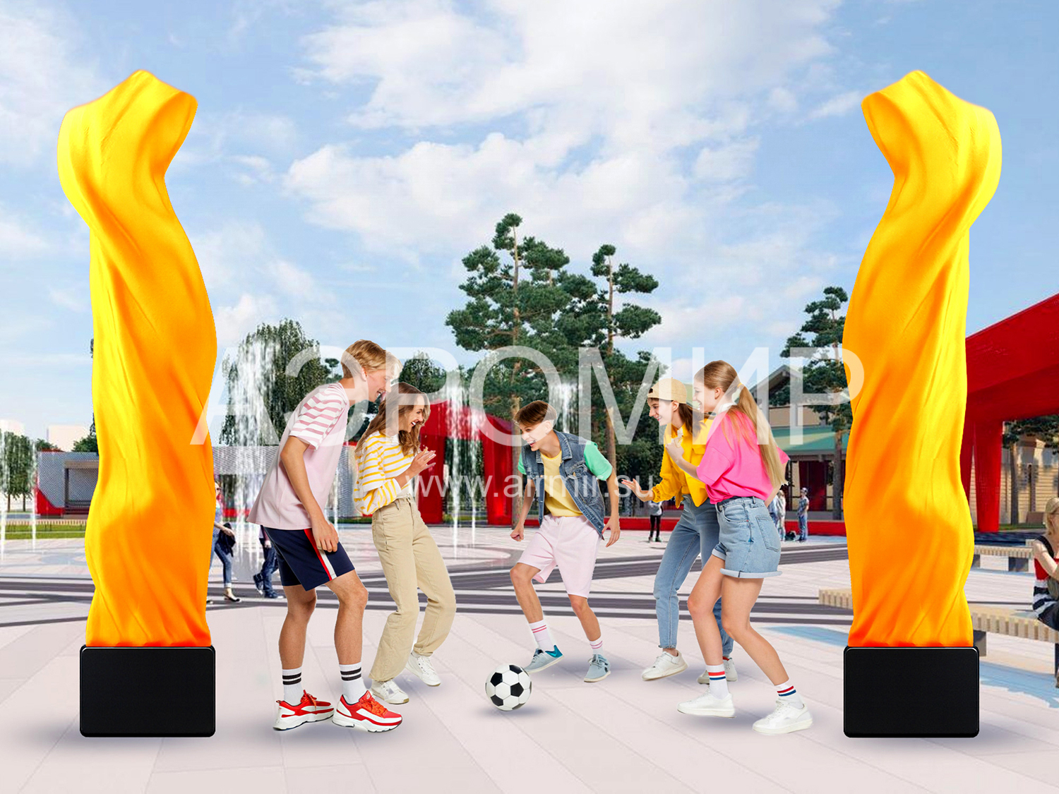 Аэрофонтаны — это самый эффектный на рынке динамических конструкций способ украсить и сделать заметным любое мероприятие и место. Спецэффекты аэрофонтана отлично заменяют традиционные декораций и оформления входной группы.