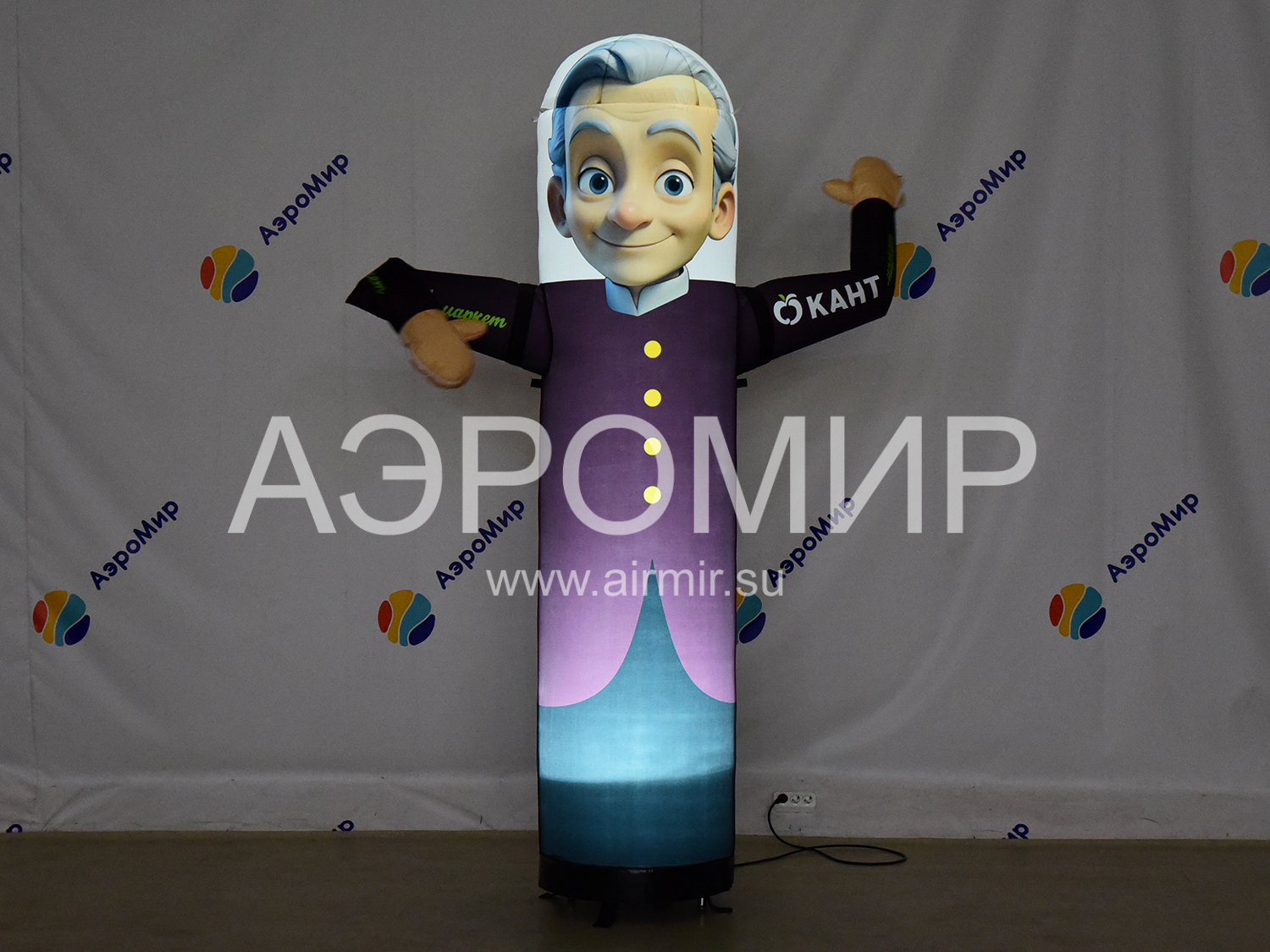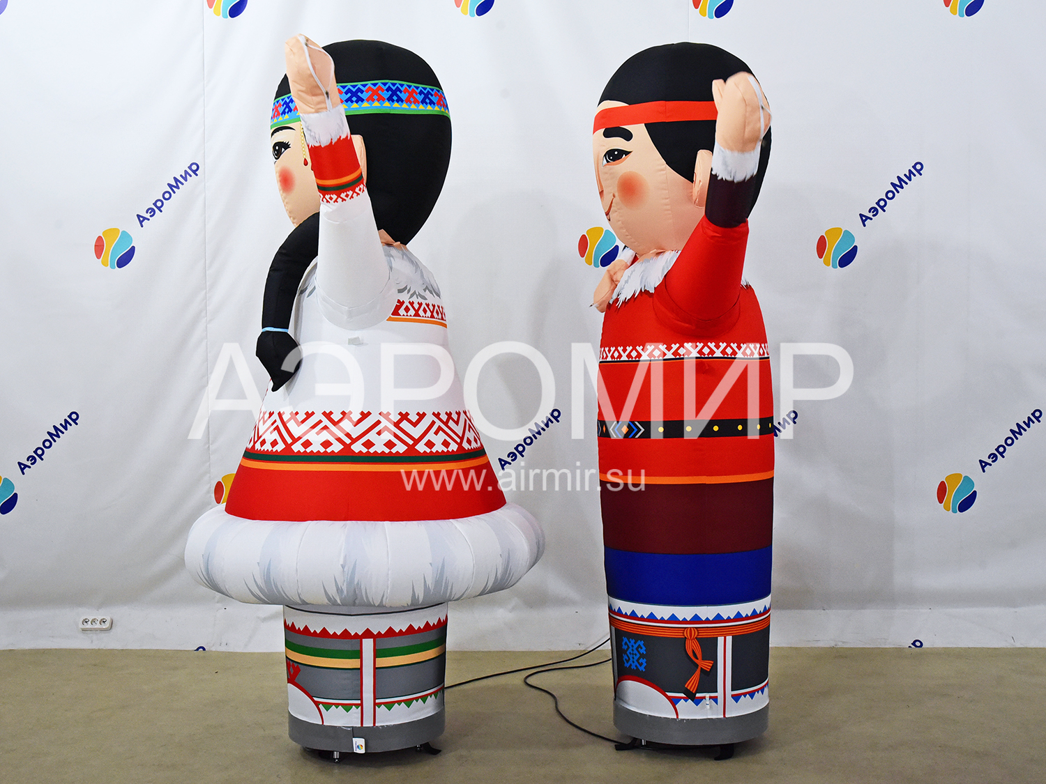 Установите напротив друг друга вентиляторы изделия, предварительно очистив площадку от мусора, колющих и режущих предметов. Выньте фигуру из чехла, разверните ее, держите аэромена в руках, чтобы не испачкать ткань.