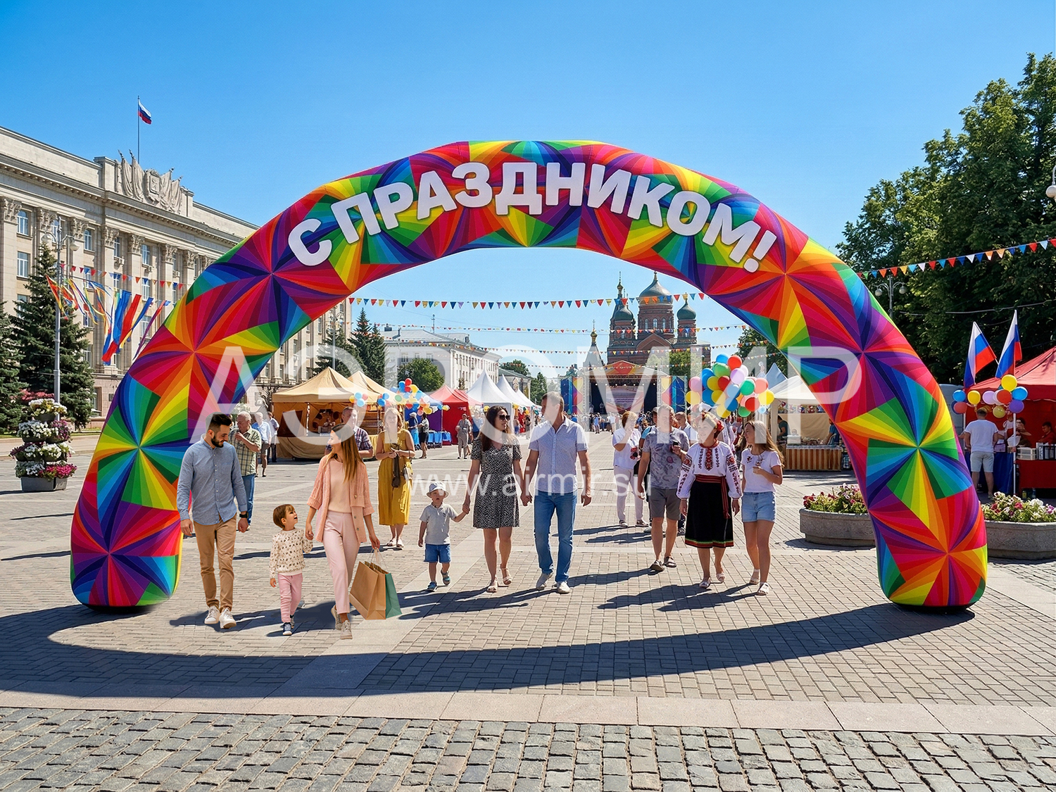 Особенности конструкции и разнообразие цветовых решений заметно расширяют сферу применения надувных арок. Так, они давно и успешно применяются для оформления различного рода мероприятий: ярмарок, городских праздников, спортивных соревнований.