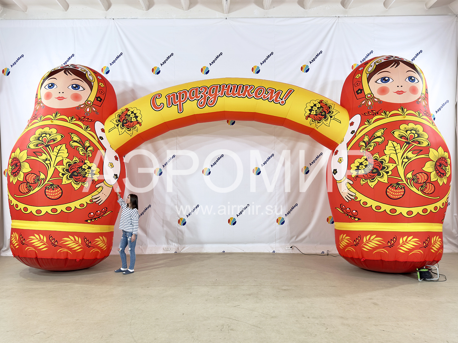 Что нужно, чтобы прогнать зиму... До упаду веселиться, кушать блины, активно участвовать в конкурсах и, конечно же, ярко встретить при входе на праздник! И это не шутка, ведь и вправду, говорят: «Встречают по одёжке, а провожают по уму»! Ярко оформит входную группу, приметно и издалека - арка с матрешками. Арка выполнена по канонам национального праздника Масленица, поэтому она станет визитной карточкой события.